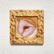 size: 80×80(mm) 楮紙に土絵具、胡粉、植物染料