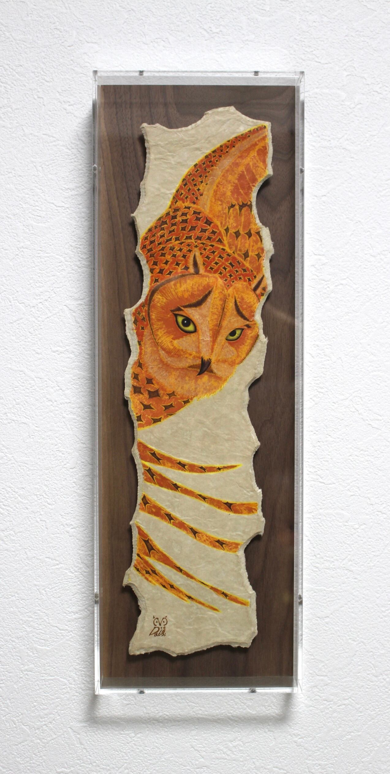 燃えるような、それでいて美しい羽ばたきをイメージした作品です。